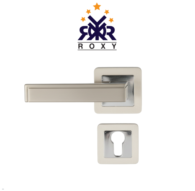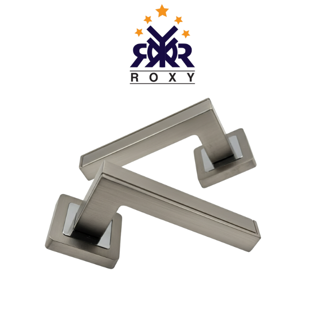 A premium light nickel door handle featuring a modern square design that blends elegance and