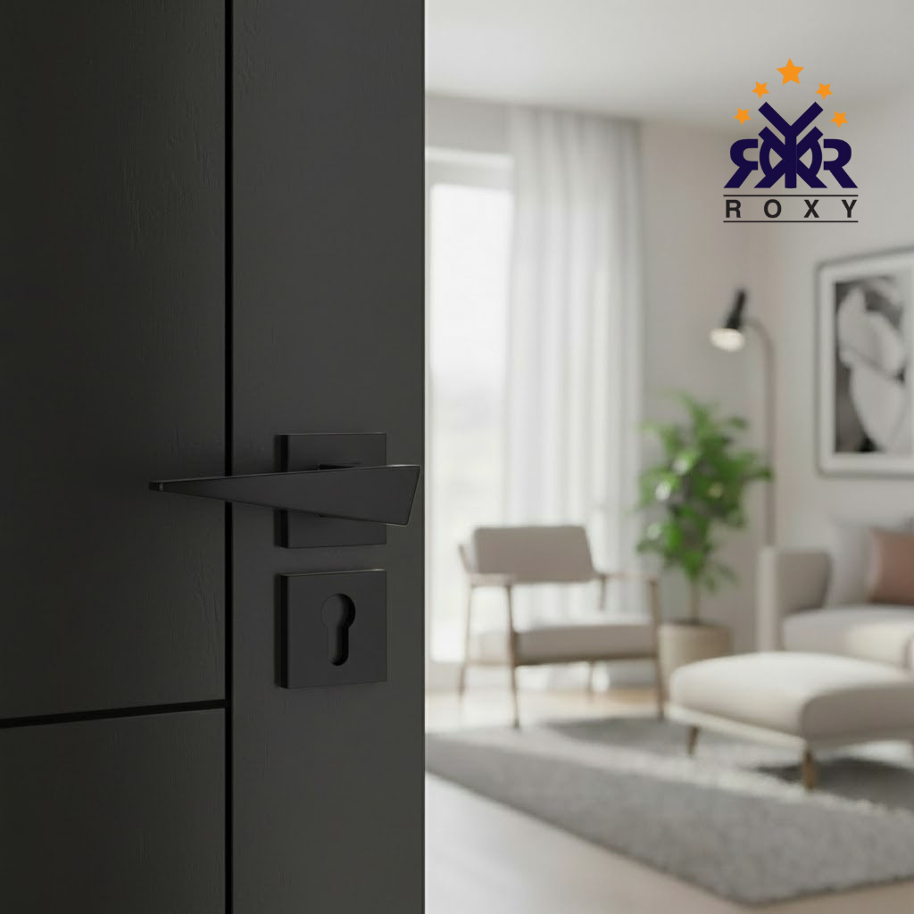 مسكة باب فاخره باللون الأسود المطفى، يتميز بتصميم مائل أنيق يجمع بين القوة والبساطة في آنٍ واحد. مثالي للأبواب العصرية التي تبحث عن لمسة راقية بطابع عصري وجريء.