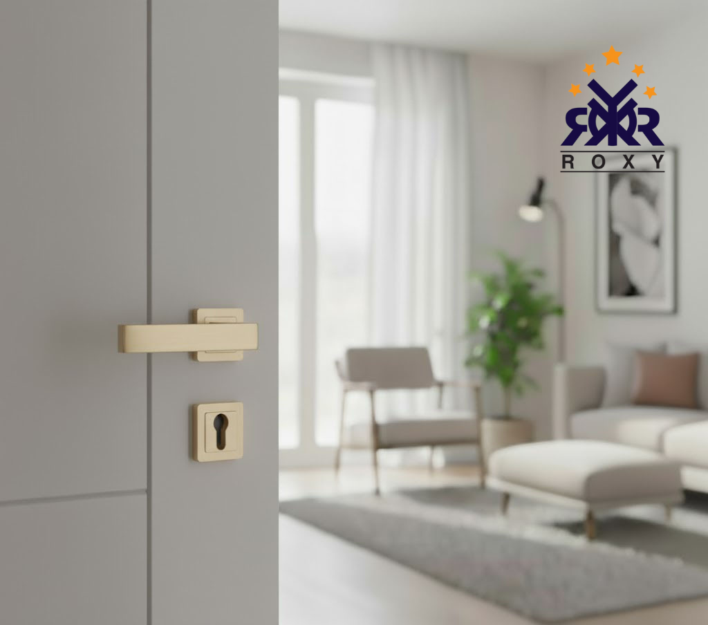 مسكة باب بلون الذهبي فاتح بتصميم مربع عصري وجودة عالية