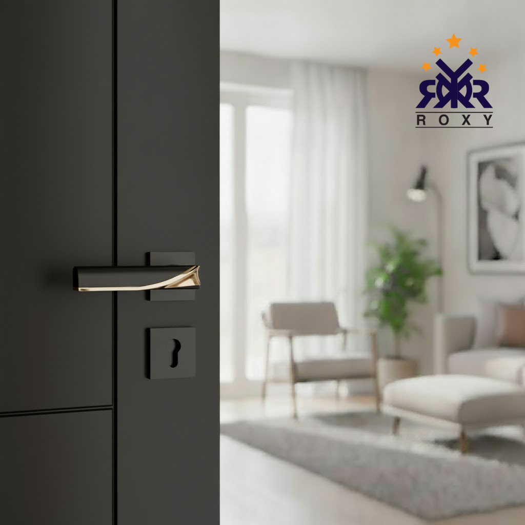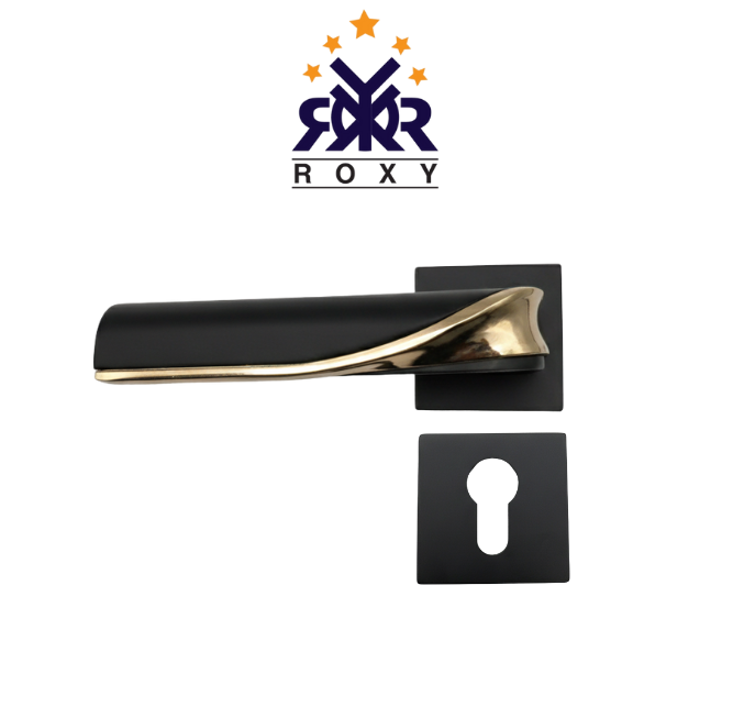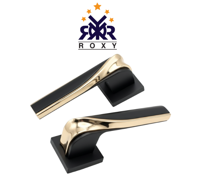 مقبض باب بلون الأسود وذهبي بتصميم فاخر منحني وجودة عالية