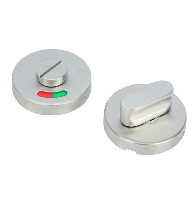 كالون مخصص لأبواب الحمامات والغرف الداخلية، مزود بمؤشر إشغال (أخضر/أحمر)، ويتميز بتصميم أنيق ودائري من الستانلس ستيل. يوفر خصوصية عالية وسهولة استخدام دون الحاجة لمفتاح، مع آلية غلق سلسة ومتينة